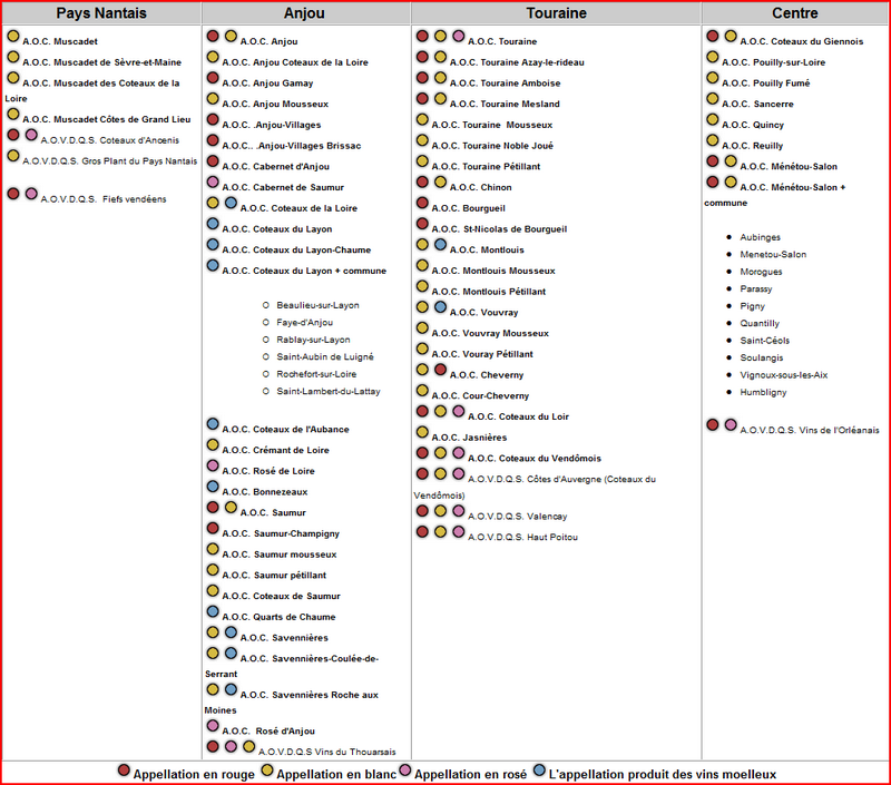 Départements : Pays Nantais : Loire Atlantique (44), Maine et Loire (49) Anjou : Maine et Loire (49) Touraine : Indre et Loire (37), Loir et Cher (41) Centre : Loiret (45), Nièvre (58), Yonne (89)