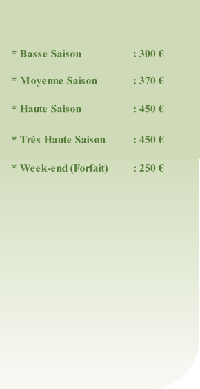 Les tarifs n'incluent pas le ménage de sortie. (Forfait ménage : 80 €uros)